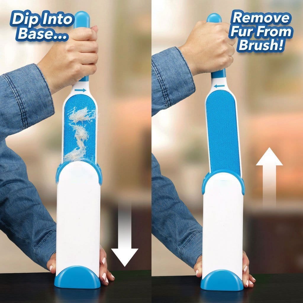 Self-Cleaning Base:When needed, simply put your brush into the cleaning base and pull it out. This will quickly remove the fur or lint right off, cleaning your brush and making it as good as new. The fur is collected in the base itself which can be emptied anytime.