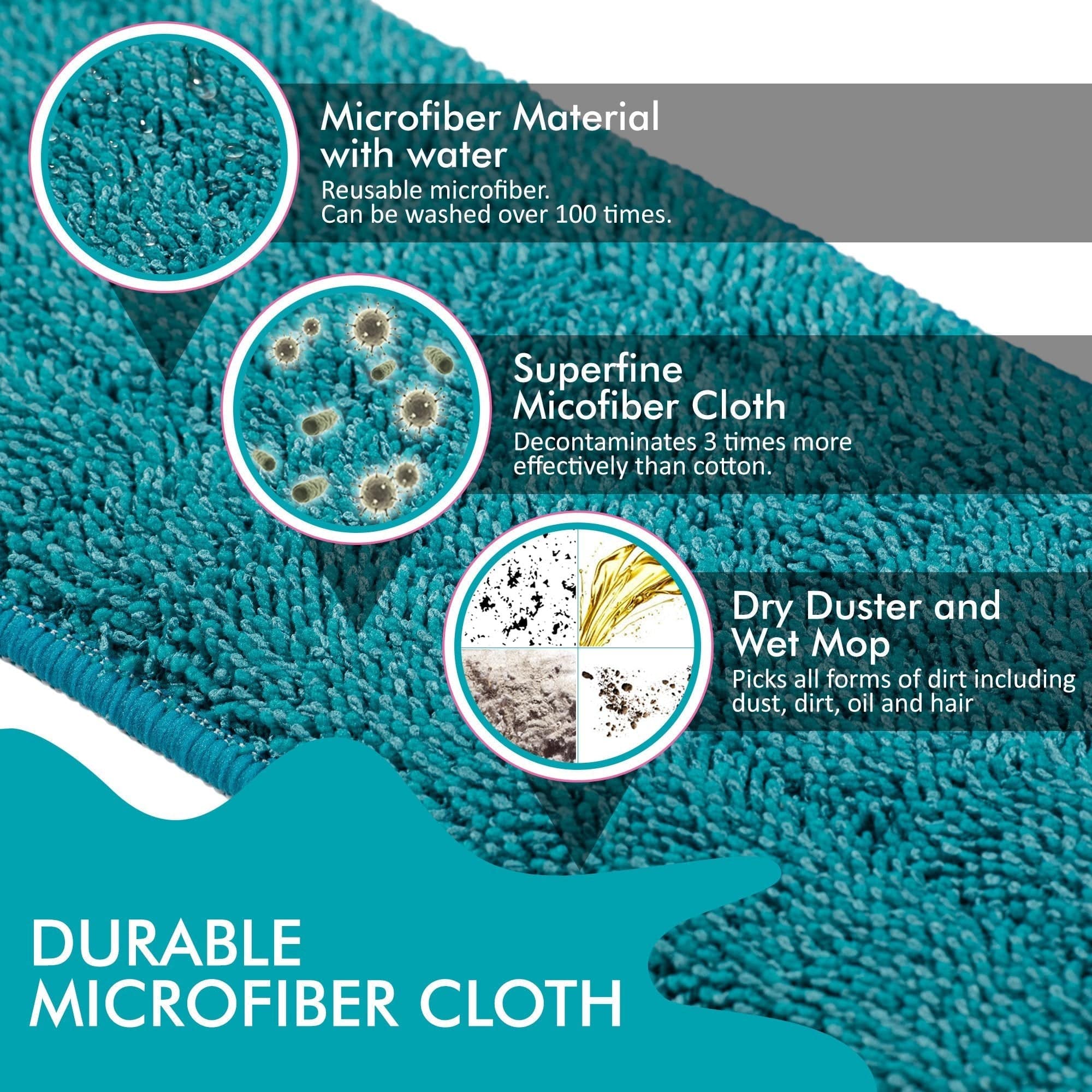 Versatile: HydroMop™ is suitable for all hard floors, even walls, or your car. Add water, soap, or diluted sanitizer solution to the container as per your needs.