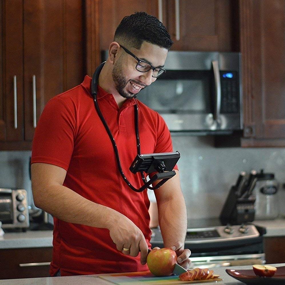 Free up your hands while using your smart devices! Flexily™, a neck phone holder for binge-watching, gaming, following recipes, and more without numbing your arms!!Flexily™ hangs comfortably around your neck, the flexible phone holder is provided with soft foam. Being adjustable, it is compatible with all smartphones, tablets, and iPads. Rotate it 360° in your desired direction. So, no more dropping your phone straining your hands, make life easier with Flexily™! FEATURES