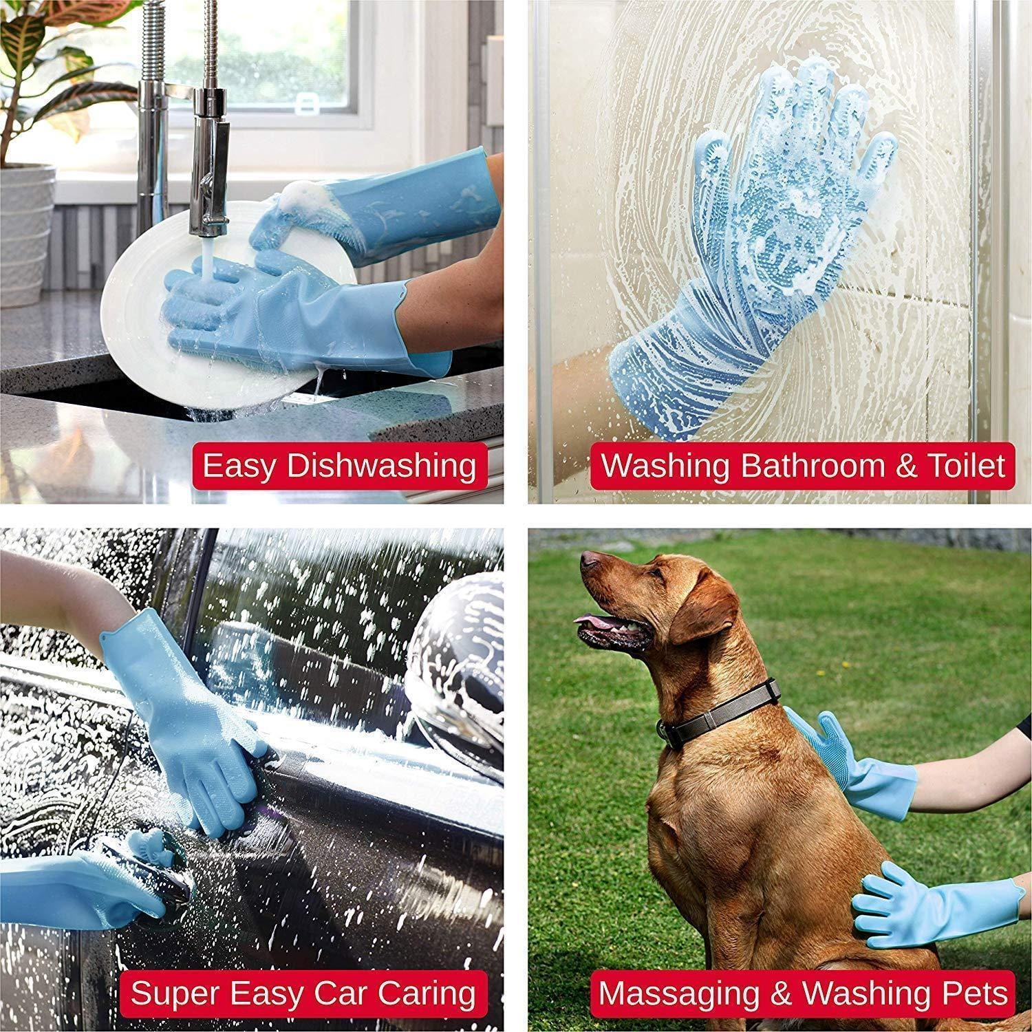 Versatile Design: Scruves is all that you need to make your daily chores easier! They can be used for cleaning the kitchen, dishes, fruit & vegetable, bathroom, bedroom, wardrobe, bathing pets, washing cars and more. The hook at the end of the gloves let you conveniently store and dry them.