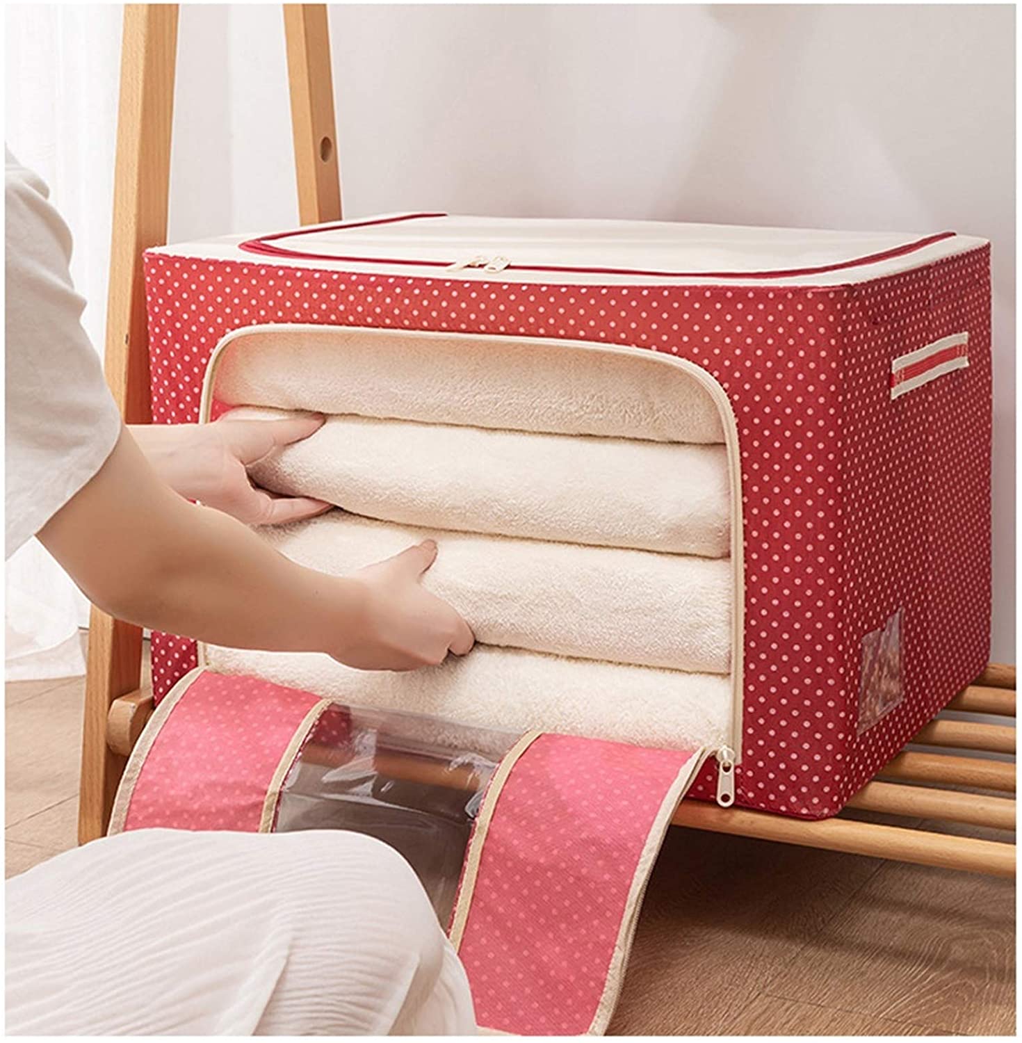 East to Stack: The sturdy steel frame keeps the box firm, making it stackable. The front zipper lets you store things without lifting the box above it.